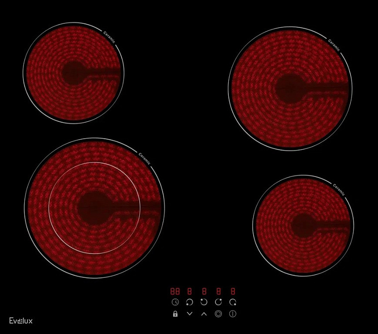 Электрическая варочная панель Evelux HEV 641 B снабжена 4 конфорками. Тип нагревательных зон — электрические hi-light. Высота модели составляет 5 см, ширина — 59 см, глубина — 52 см. Материал поверхности — стеклокерамика, благодаря чему она легко очищается от жирного налета и других загрязнений. Комфортную эксплуатацию прибора гарантирует сенсорное управление. Также здесь есть таймер с отключением, защитное отключение. Основной цвет данного устройства — черный, что служит его сочетанию с кухонным интерьером в любом стиле: от современного до ретро и классики. Универсальный дизайн и независимый тип установки обеспечивают гибкие условия монтажа этой варочной панели.
