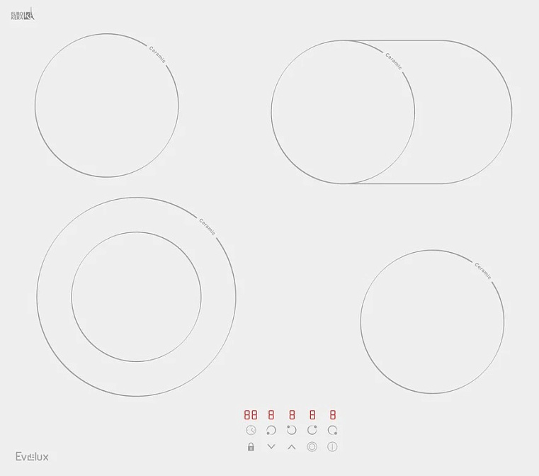 Электрическая варочная панель Evelux HEV 642 W снабжена 4 конфорками. Тип нагревательных зон — электрические hi-light. Высота модели составляет 5 см, ширина — 59 см, глубина — 52 см. Материал поверхности — стеклокерамика, благодаря чему она легко очищается от жирного налета и других загрязнений. Комфортную эксплуатацию прибора гарантирует сенсорное управление. Также здесь есть таймер с отключением, защитное отключение. Основной цвет данного устройства — белый, что служит его сочетанию с кухонным интерьером в любом стиле: от современного до ретро и классики. Универсальный дизайн и независимый тип установки обеспечивают гибкие условия монтажа этой варочной панели.
