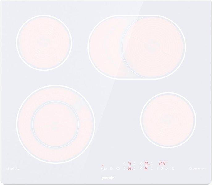 Gorenje ECT643SYW — стеклокерамическая варочная поверхность в элегантном белом исполнении. Модель снабжена четырьмя зонами нагрева Hi-Light различного диаметра. Автоматика приготовления позволяет быстро вскипятить большой объем жидкости. При помощи функции ChildLock можно заблокировать панель управления от случайного нажатия.