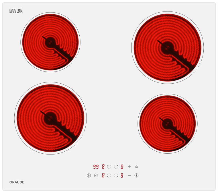 Электрическая варочная панель Graude EK 60.0 W снабжена 4 конфорками. Тип нагревательных зон — электрические hi-light. Высота модели составляет 5.1 см, ширина — 59 см, глубина — 52 см. Материал поверхности — стеклокерамика, благодаря чему она легко очищается от жирного налета и других загрязнений. Комфортную эксплуатацию прибора гарантирует сенсорное управление. Также здесь есть таймер с отключением, защитное отключение. Основной цвет данного устройства — черный, что служит его сочетанию с кухонным интерьером в любом стиле: от современного до ретро и классики. Универсальный дизайн и независимый тип установки обеспечивают гибкие условия монтажа этой варочной панели.