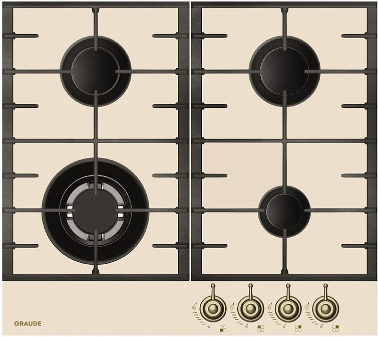 Варочная панель Graude GSK 60.1 EL представлена в ретро-стиле. Модель с лаконичным дизайном и цветом «античный белый» отлично сочетается с кухнями классического интерьера. Элегантные регуляторы в бронзовом исполнении дополняют образ. Ручки не нагреваются во время работы горелок, что обеспечивает дополнительный комфорт при управлении устройством. Автоматический электроподжиг, интегрированный в каждый переключатель, повышает уровень безопасности, так как нет необходимости в использовании спичек и зажигалок.
