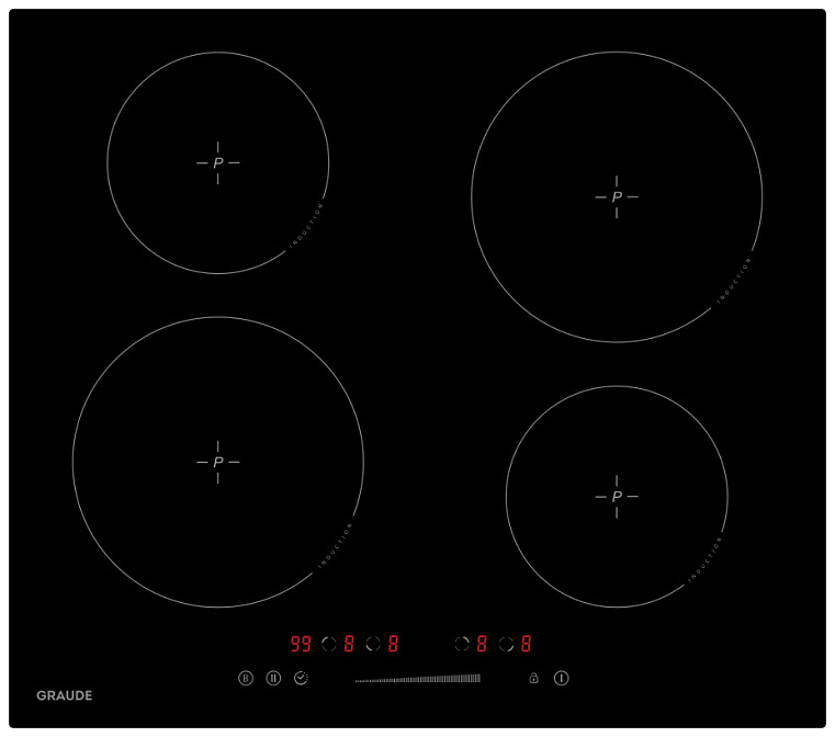 Электрическая варочная панель Graude IK 60.0 AS снабжена четырьмя конфорками. Тип нагревательных зон — индукционные. Индукция — это безопасная, передовая, эффективная и экономичная технология приготовления пищи. Она работает с помощью электромагнитных колебаний, генерирующих тепло непосредственно на дне посуды, а не косвенно через нагрев поверхности стекла. Стекло становится горячим только потому, что в конечном итоге посуда согревает его. Кроме того, техника поддерживает функцию индикации остаточного тепла. Индикация пропадет, когда варочная зона охладится до безопасной температуры. Можно использовать это остаточное тепло как энергосберегающую технологию, например, для нагрева посуды для последующего приготовления пищи.