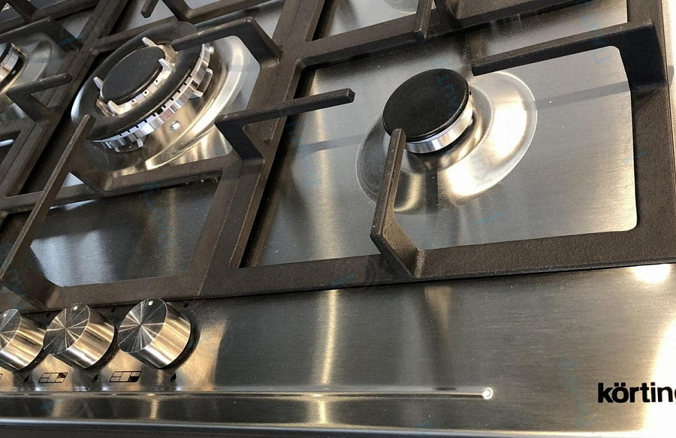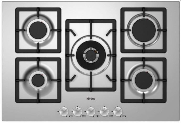 Korting HG 797 CTX — газовая варочная панель серии Crystal с мощной горелкой WOK по центру. Устройство оборудовано электроподжигом. За безопасность отвечает система «Газ-контроль». В ситуации когда пламя погаснет, она предотвратит утечку. Поверхность изготовлена из нержавеющей стали, которая устойчива к вмятинам и царапинам. Поворотные регуляторы металлические и не нагреваются при включенных конфорках.