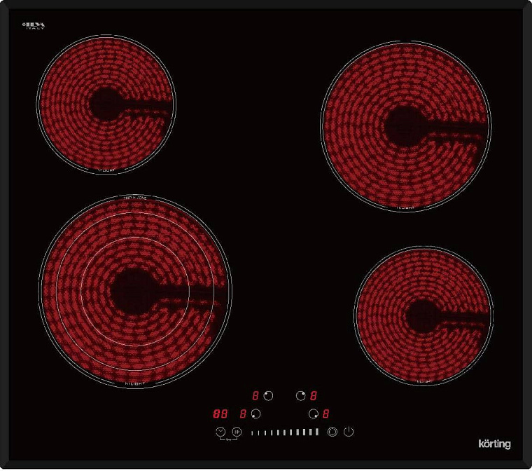 Электрическая варочная панель Korting HK 63500 B снабжена 4 конфорками. Тип нагревательных зон — электрические hi-light. Высота модели составляет 5 см, ширина — 59 см, глубина — 52 см. Материал поверхности — стеклокерамика, благодаря чему она легко очищается от жирного налета и других загрязнений. Комфортную эксплуатацию прибора гарантирует сенсорное управление. Также здесь есть защитное отключение. Основной цвет данного устройства — черный, что служит его сочетанию с кухонным интерьером в любом стиле: от современного до ретро и классики. Универсальный дизайн и независимый тип установки обеспечивают гибкие условия монтажа этой варочной панели.
