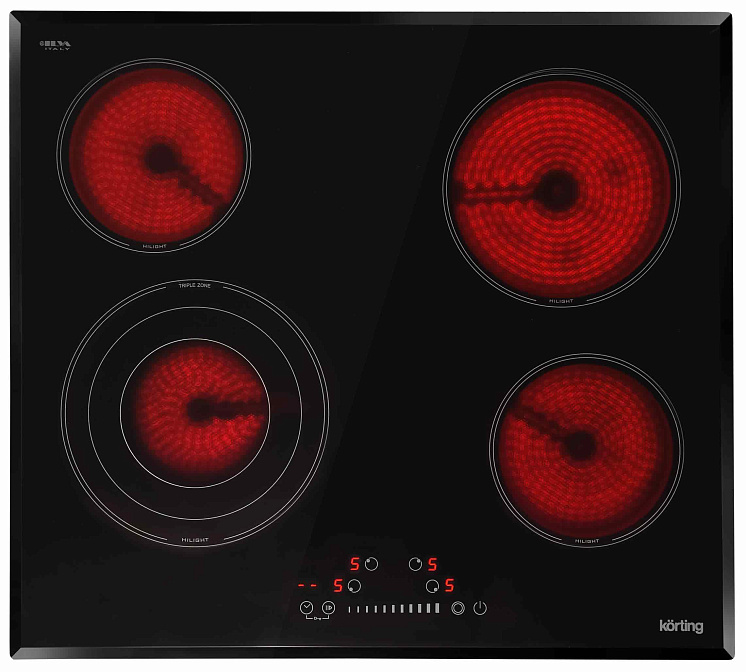 Электрическая варочная панель Korting HK 63500 B снабжена 4 конфорками. Тип нагревательных зон — электрические hi-light. Высота модели составляет 5 см, ширина — 59 см, глубина — 52 см. Материал поверхности — стеклокерамика, благодаря чему она легко очищается от жирного налета и других загрязнений. Комфортную эксплуатацию прибора гарантирует сенсорное управление. Также здесь есть защитное отключение. Основной цвет данного устройства — черный, что служит его сочетанию с кухонным интерьером в любом стиле: от современного до ретро и классики. Универсальный дизайн и независимый тип установки обеспечивают гибкие условия монтажа этой варочной панели.