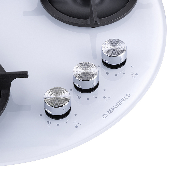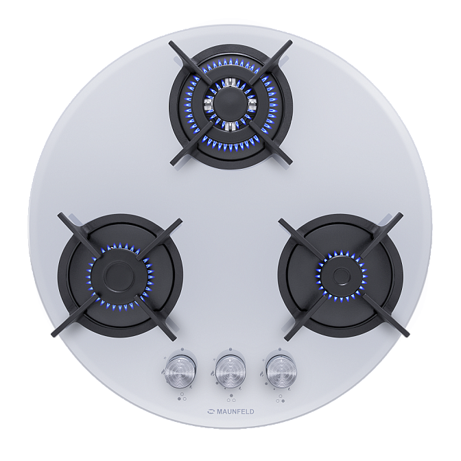 Круглая варочная панель Maunfeld EGHG.43.23CW/G снабжена 3 конфорками. Тип нагревательных зон — газовые. Высота модели составляет 5 см, ширина — 52 см, глубина — 52 см. Материал поверхности — закаленное стекло, благодаря чему она легко очищается от жирного налета и других загрязнений. Комфортную эксплуатацию прибора гарантирует механическое управление. Также здесь есть газ-контроль, автоподжиг горелок автоматический. Основной цвет данного устройства — белый, что служит его сочетанию с кухонным интерьером в любом стиле: от современного до ретро и классики. Универсальный дизайн и независимый тип установки обеспечивают гибкие условия монтажа этой варочной панели.