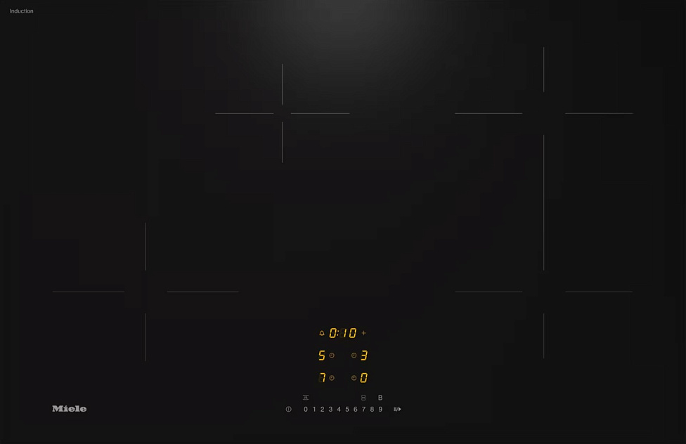 Варочная панель работает на индукционном нагреве — это значит, что повышается температура непосредственно посуды, в которой готовится блюдо. Таким образом промежуточная ступень с предварительным нагревом конфорки пропускается — сокращается время, повышается безопасность. Количество конфорок в этой модели: 6.