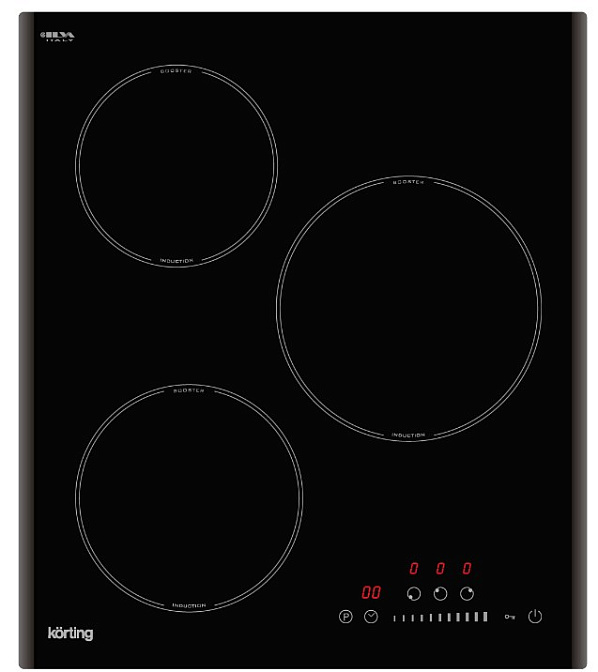 Korting HI 43053 B — черная варочная поверхность со скошенными по бокам краями. Модель оборудована тремя разноразмерными конфорками индукционного типа. Зоны такого типа нагревают посуду за счет индукционного тока. Нагревательная спираль, как в Hi-Light поверхности здесь отсутствует, а тепло воздействует непосредственно на дно посуды, благодаря этому индукционный нагрев считается одним из самых быстрых и имеет высокий КПД. Для удобства управления предусмотрена сенсорная панель «Touch Control», при помощи которой можно активировать одну из функций или же запрограммировать таймер. Режим «Booster» кратковременно повышает мощность конфорки примерно на 15%, что позволяет быстро вскипятить большой объем жидкости или быстрее разогреть посуду до нужной температуры. Для безопасной эксплуатации есть опции блокировки и защитного отключения, а также система индикации остаточного тепла. Теплую конфорку можно использовать для подогрева блюд при уже выключенной варочной панели.