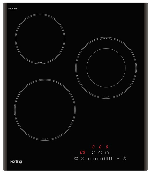 Korting HK 43051 B — компактная варочная панель от известного производителя, выполненная в элегантном черном цвете. Поверхность изготовлена из высокопрочной стеклокерамики, благодаря чему она отлично противостоит как химическому так и механическому воздействию, а также отличается устойчивостью к высоким температурам. Для очистки техники от пригоревших остатков пищи, а также жирного налета и других загрязнений оптимальнее всего использовать специальный скребок для стеклокерамики. Модель оборудована тремя конфорками быстрого нагрева типа Hi-Light, в которых в качестве нагревательного элемента применяется уложенная змейкой лента из высокоомного сплава, что позволяет плавно регулировать мощность и равномерно распределять излучаемое тепло по всей рабочей зоне. Для наилучшего контроля за процессом готовки имеется электронный таймер. Безопасную эксплуатацию техники обеспечивают системы защитного отключения и блокировки кнопок.