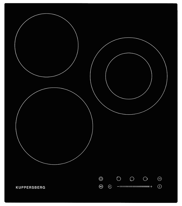 Электрическая варочная поверхность Kuppersberg ECS 402 типа hi-light имеет три конфорки, которые разумно располагаются подальше от панели управления. Она имеет тип дизайна «домино». И хоть жар не может ей причинить время, поскольку стеклокерамическое покрытие не нагревается, но вы защитите руки от случайного ожога. Мощность конфорок варьируется, а крайняя правая относится к типу двухконтурных. На ней можно готовить как на стандартной посуде, так и на крупногабаритной. Девять ступеней регулировки мощности помогут подобрать оптимальный режим приготовления для любого блюда. Сенсорное управление помогает с настройками. Устройство имеет три индикации: включения, остаточного тепла и уровня мощности. Функция Stop&Go на время выключит конфорки (например, чтобы вы смогли протереть убежавшее молоко), а затем возобновит работу с прежними настройками. Защита от детей заблокирует панель и не позволит изменить режим готовки.
