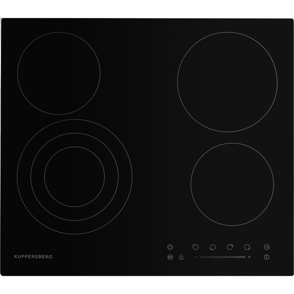 Варочная поверхность KUPPERSBERG ECS 603 оснащена четырьмя конфорками, одна из которых имеет три радиуса действия. Таким образом, на неё можно ставить посуду большого или маленького диаметра, и расход электроэнергии будет зависеть от площади подогрева. Она встраивается независимо, для неё потребуется ниша стандартных габаритов 56×50. Панель управления располагается спереди, кнопки сенсорные, есть защита от случайного нажатия. Звуковой таймер подскажет, когда цикл готовки будет окончен. Конфорки имеют индикацию остаточного тепла. Стеклокерамическая поверхность легко моется при помощи неабразивных средств. Чёрный цвет смотрится элегантно и универсально вписывается в дизайн любой кухни. Для безопасности работы устройства предусмотрено защитное отключение, которое сработает в случае внезапного отключения электроэнергии.