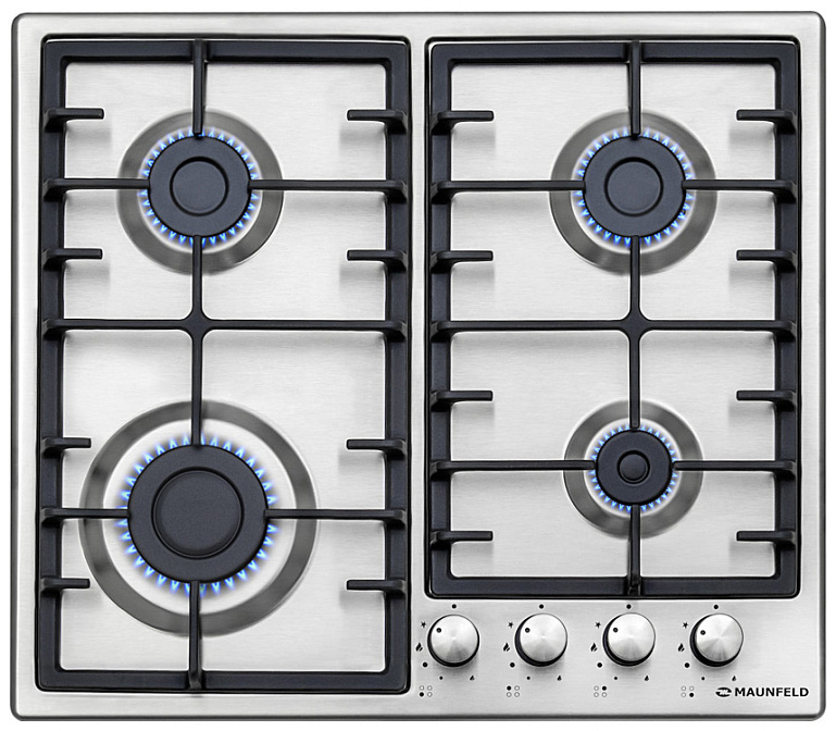 Газовая варочная поверхность MAUNFELD EGHS.64.43 CS/G снабжена 4 конфорками. Оптимальное расположение обеспечивает комфортное расположение посуды любого размера и под любой тип приготовления: от жарки до тушения. Тип нагревательных зон — газовые. Благодаря качественным форсункам обеспечивается непрерывное пламя и тихая работа. Высота модели составляет 5.1 см, ширина — 59 см, глубина — 51.5 см, что является стандартными размерами. Материал поверхности — нержавеющая сталь, благодаря чему она легко очищается от жирного налета и других загрязнений. Комфортную эксплуатацию прибора гарантирует механическое управление — оно простое и понятное для пользователя, не вызывает трудностей в настройке. Также здесь есть газ-контроль — важная опция, которая отвечает за безопасную эксплуатауию. Автоподжиг горелок автоматический.