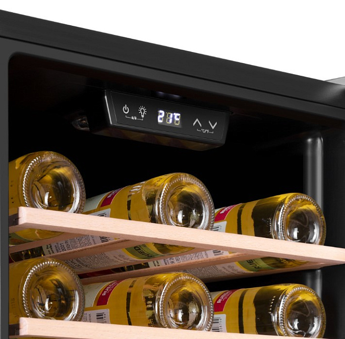 Отдельностоящий винный шкаф Maunfeld MFWC-124S56 — практичное решение для хранения благородных напитков в оптимальных условиях. Этот температурныйприбор характеризуется высотой 85.5 см и способен одновременно вместить до 56 бутылок объемом 0.75 л. Для размещения бутылок предусмотрены полки, материал изготовления которых — бук. Количество полок — 5. Тип охлаждения данного шкафа — компрессорный. Удобный электронный дисплей помогает проконтролировать рабочие параметры. Низкий уровень шума, равный 41 дБ, служит комфортной эксплуатации устройства.