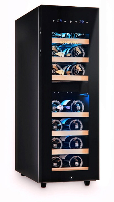 Винный шкаф MV19-KBF2 отличается расширенной функциональностью, изысканным дизайном и полноценной имитацией условий «винного погреба». Внутреннее пространство рассчитано на хранение до 19 бутылок типа Бордо объемом 0,75 л. Отсутствие посторонних запахов внутри камеры обеспечивается сменным угольным фильтром.