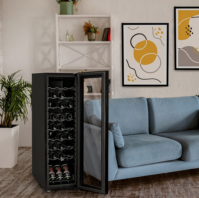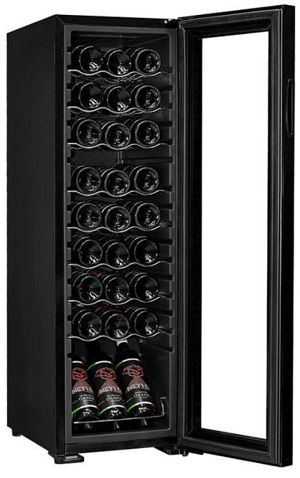 Отдельностоящий винный шкаф Meyvel MV27-CBD1 — практичное решение для хранения благородных напитков в оптимальных условиях. Этот температурныйприбор характеризуется высотой 111 см и способен одновременно вместить до 27 бутылок объемом 0.75 л. Для размещения бутылок предусмотрены полки, материал изготовления которых — металл. Количество полок — 9. Тип охлаждения данного шкафа — компрессорный. Удобный электронный дисплей помогает проконтролировать рабочие параметры. Низкий уровень шума, равный 45 дБ, служит комфортной эксплуатации устройства.
