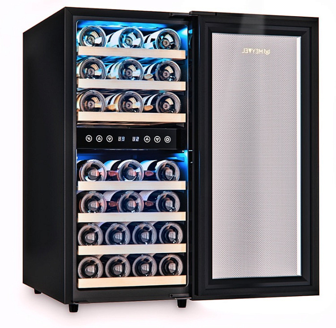 Отдельностоящий винный шкаф Meyvel MV33-KBF2 — практичное решение для хранения благородных напитков в оптимальных условиях. Этот температурныйприбор характеризуется высотой 84 см и способен одновременно вместить до 33 бутылок объемом 0.75 л. Для размещения бутылок предусмотрены полки, материал изготовления которых — дерево. Количество полок — 7. Тип охлаждения данного шкафа — компрессорный. Удобный электронный дисплей помогает проконтролировать рабочие параметры. Низкий уровень шума, равный 45 дБ, служит комфортной эксплуатации устройства.