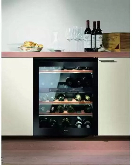 Встраиваемый винный шкаф Miele KWT 4154 UG-1 — практичное решение для хранения благородных напитков в оптимальных условиях. Этот температурныйприбор характеризуется высотой 82 см и способен одновременно вместить до 40 бутылок объемом 0.75 л. Для размещения бутылок предусмотрены полки, материал изготовления которых — дерево. Количество полок — 5. Низкий уровень шума служит комфортной эксплуатации устройства. Дверцу можно перенавесить, изменив тем самым сторону ее открывания.