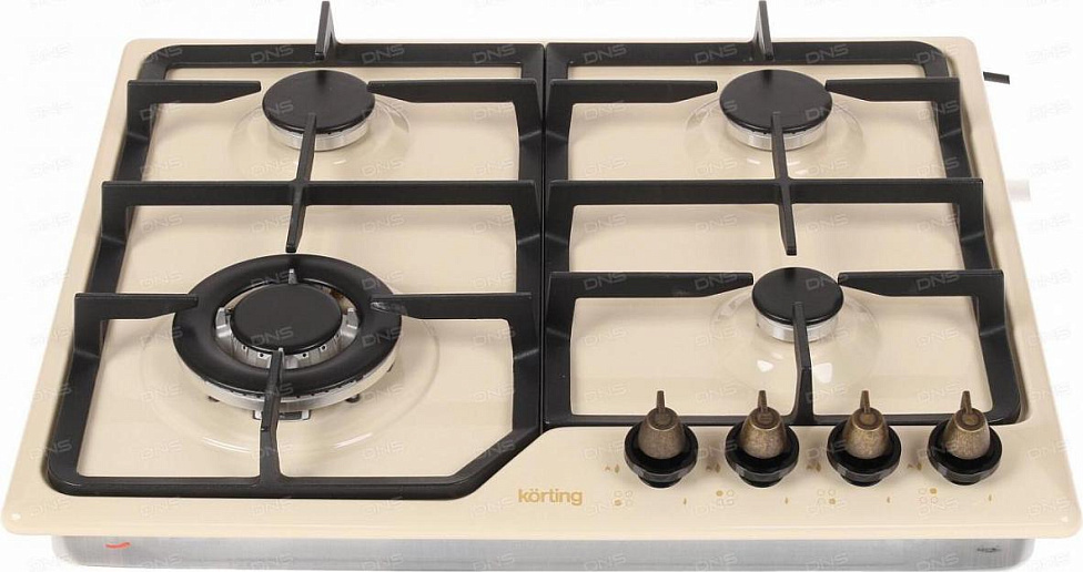 Korting HG 630 CTSB — варочная поверхность в цвете слоновая кость и бронзовой фурнитурой. Модель оснащена специальной, сверхмощной горелкой WOK с тройным пламенем, которая помогает равномерно прогреть всю кастрюлю и позволяет быстрее приготовить блюдо. Держатели для посуды выполнены из высококачественного чугуна. Отличаются устойчивостью и долговечностью. Если пламя погаснет система «Газ-контроль» остановит подачу газа.