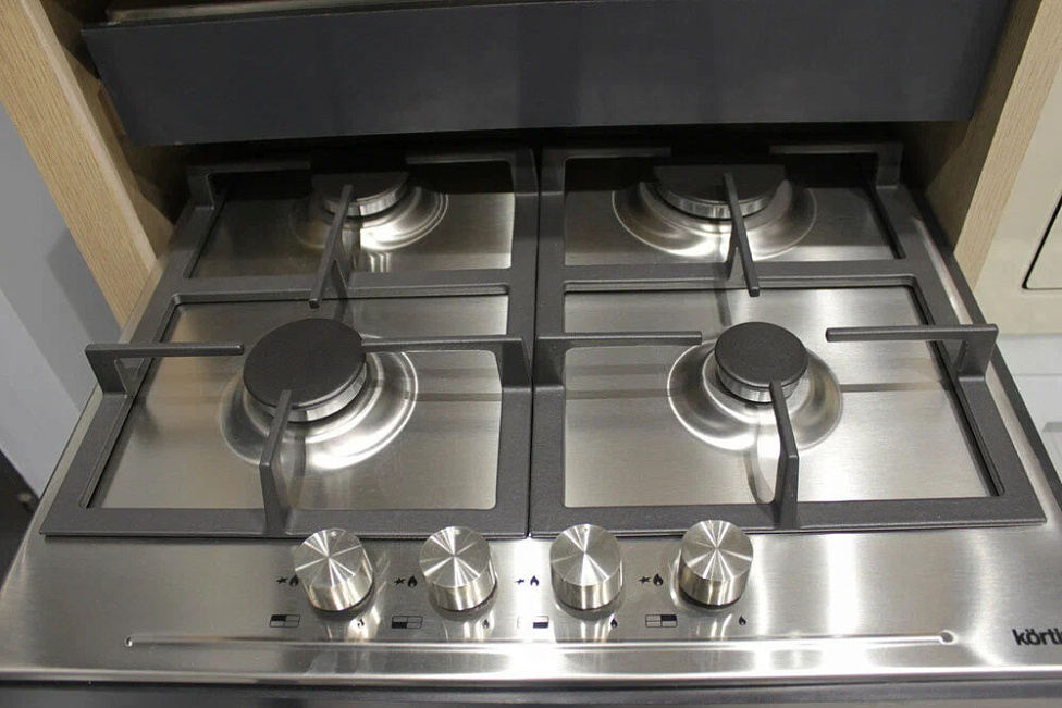 Решётки конфорок сделаны из прочных материалов, не подвержены коррозии и механическим воздействиям. Их можно легко снимать и мыть в посудомоечной машине или под проточной водой. Для очистки можно использовать абразивные средства и специальные моющие составы. В комплектацию устройства входит адаптер для кофейника.