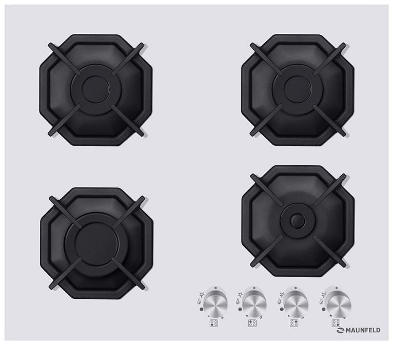Газовая встраиваемая газовая варочная панель MAUNFELD EGHG.64.2CW/G снабжена 4 конфорками различной мощности. Тип нагревательных зон — газовые, которые отличает тихая работа. Высота модели составляет 5 см, ширина — 59 см, глубина — 51 см. Прибор интегрируется в столешницу. Материал поверхности — закаленное стекло, благодаря чему она легко очищается от жирного налета и других загрязнений. Оно устойчиво к высоким температурам, а также образованию глубоких царапин. Комфортную эксплуатацию прибора гарантирует механическое управление, которое отличается легкостью при настройке параметров и будет понятно людям любых возрастов. Также здесь есть газ-контроль, который защищает от риска возникновения утечки, блокируя подачу газа к работающей конфорке, у которой погасло пламя. Автоподжиг представлен для каждой ручке.