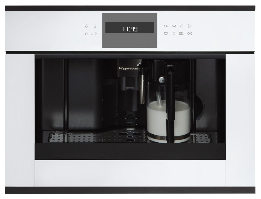 Встраиваемая встраиваемая кофемашина Kuppersbusch CKV 6550.0 W5 станет незаменимым помощником как на домашней кухне, так и в офисе. Высота модели составляет 45.5 см, ширина — 59.5 см, глубина — 45.5 см. Основной цвет данного устройства — белый, что гарантирует его сочетание с интерьером в любом стиле: от современного до ретро и классики. автоматический позволяет с легкостью приготовить вкусный и ароматный напиток с густой молочной пенкой. Машина оснащена отсеком для зерен, молотого кофе, и резервуаром для молока. Режимы автоматической промывки гарантируют легкий уход за прибором.