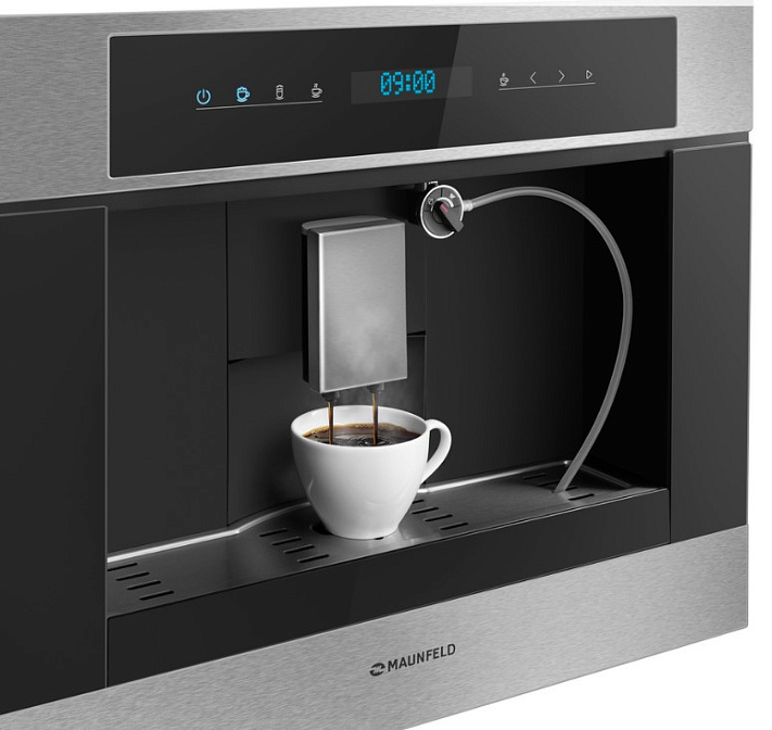 Встраиваемая кофемашина Maunfeld AMCM1503S станет незаменимым помощником как на домашней кухне, так и в офисе. Устройство устанавливается в подготовленную нишу в мебельном гарнитуре. Высота модели составляет 44.9 см, ширина — 59.4 см, глубина — 44.9 см. Такие размеры позволяют встраивать прибор в колонную с другой техникой, например, с духовым шкафом или микроволновой печью. Основной цвет данного устройства — серебристый, что гарантирует его сочетание с интерьером в любом стиле: от современного до ретро и классики. Полностью сенсорное управление отличается быстротой реакции на команды пользователя. Элементы имеют графические обозначения, которые помогают сориентироваться в настройках.