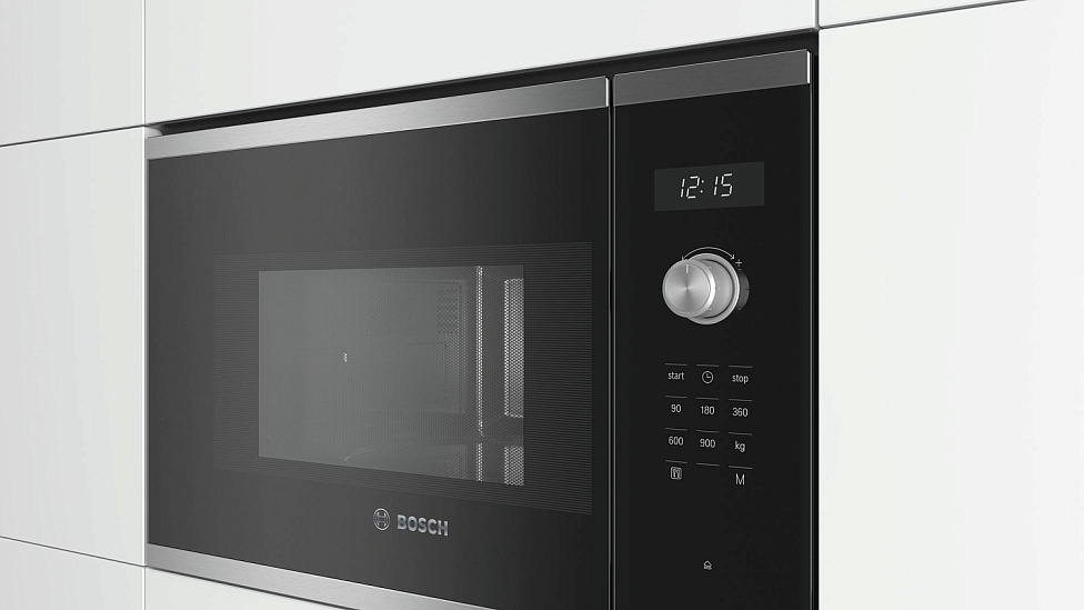 Встраиваемая элегантная микроволновая печь Bosch BFL 554 MS 0 создана для комфортного и быстрого приготовления пищи и разморозки продуктов. Объём рабочей камеры микроволновки 25 литров. Равномерное распределение температуры даёт поворотное устройство подставки. В приборе предусмотрена пятиуровневая система с максимальной мощностью микроволн 900 Вт. Электронное управление микроволновки осуществляется с помощью сенсорных кнопок и поворотных регуляторов. В приборе предусмотрено 7 автоматических программ. Три из них — программы приготовления и четыре — программы разморозки для разных видов продуктов. Многофункциональные часы EasyClock отражают время суток и время приготовления. Звуковой настраиваемый сигнал сообщит об окончании процесса. В приборе предусмотрена функция запоминания программы приготовления блюд. Для безопасного использования, печь оборудована защитными функциями отключения и охлаждения.