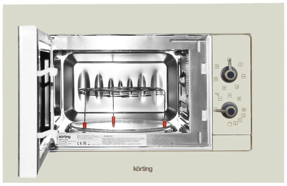 Встраиваемая встраиваемая микроволновая печь Korting KMI 720 RB шириной 59 см станет незаменимым помощником на любой кухне. Стиль модели — ретро. Цвет фронтальной поверхности прибора — бежевый. Объем рабочей камеры СВЧ составляет 20 л. Среди функций есть режим приготовления на гриле. Материал изготовления внутренних стенок — нержавеющая сталь, благодаря чему они легко очищаются от жирного налета. Дверные петли расположены слева. Модель имеет поворотные регуляторы управление.