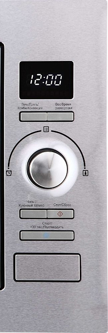 Korting KMI 925 CX — встраиваемая микроволновая печь с фронтом из нержавеющей стали. Модель снабжена навесной дверцей, открывание которой осуществляется путем нажатия на кнопку. Стиль модели — современный. Цвет фронтальной поверхности прибора — нержавеющая сталь с черным стеклом. Объем рабочей камеры СВЧ составляет 25 л. Среди функций есть режим приготовления на гриле и конвекция, значительно расширяющие кулинарные возможности. Материал изготовления внутренних стенок — нержавеющая сталь, благодаря чему они легко очищаются от жирного налета. Быстрый старт позволяет начать процесс приготовления или подогрева блюд без промедления. Дверные петли расположены слева. Управление осуществляется с помощью удобных кнопок и классического поворотного регулятора, обеспечивая точную и быструю настройку параметров.