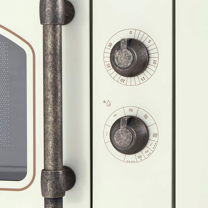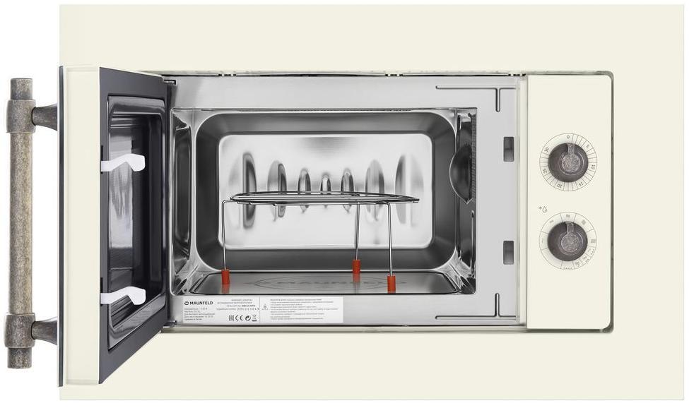 Встраиваемая микроволновая печь Maunfeld JBMO.20.5ERBG шириной 59.2 см станет незаменимым помощником на любой кухне. Модель представлено в стиле ретро, идеально гармонирует с другими бытовыми приборами данной бренда в этой серии. Фронтальная поверхность — слоновая кость. Оттенок хорошо сочетается с большинством цветовых решений кухонь. Изделие дополнено элегантной фурнитурой в бронзовом исполнении. Благодаря встраиванию устройство экономит полезное пространство, смотрится современно и стильно.