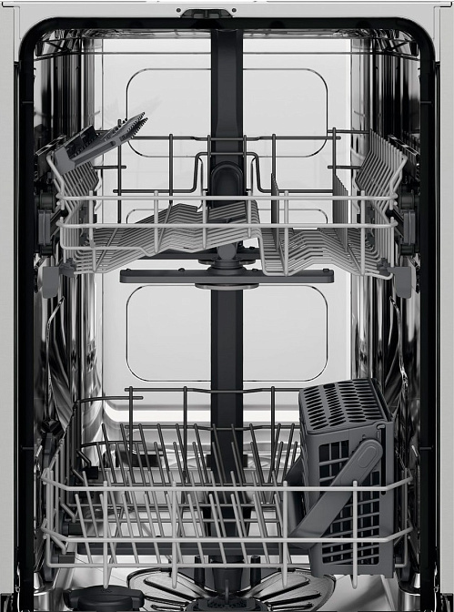 Встраиваемая посудомоечная машина Electrolux EEA12100L станет оптимальным решением для любой современной кухни. Эта встраиваемая модель шириной 44.6 см одновременно вмещает до 9 стандартных комплектов посуды. Цвет машинки — черный. Стиль — современный. Тип сушки — конденсационная airdry. Благодаря наличию 5 программ можно с легкостью справиться с загрязнениями любой степени. Для удобной эксплуатации предусмотрена возможность использования средств «3 в 1». Безопасной работе служит система защиты от протечек. Высокий класс энергоэффективности A+ гарантирует экономичный расход электроэнергии.
