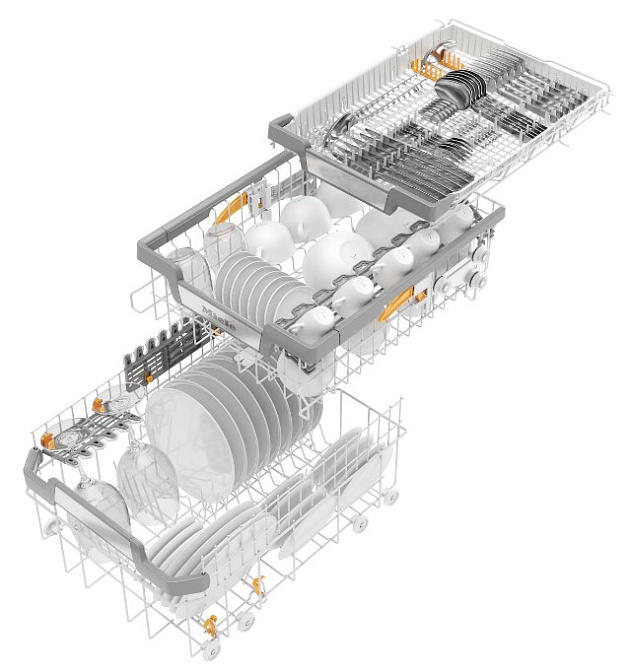 Тип корзин: MaxiComfort, Размещение столовых приборов: поддон 3D-MultiFlex