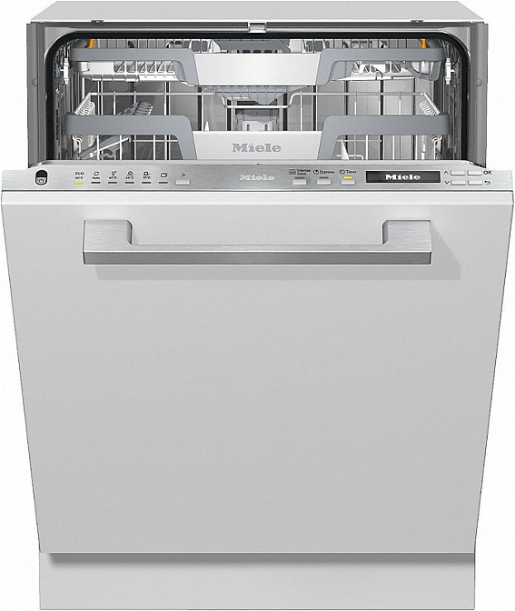 Встраиваемая модель Миле отлично впишется в любой интерьер, главное — правильно выбрать место, чтобы подвести коммуникации. Устанавливается в нишу целиком, полностью закрывается декоративной панелью. Обратите внимание: в комплекте не идет фасад, его необходимо установить самостоятельно. Имеет стандартные размеры, поэтому может не поместиться на очень маленькой кухне. В камеру можно загрузить ограниченное число комплектов: 14 шт. Комплектом считается набор посуды на одного человека, который нужен для полноценного приема пищи: глубокая и плоская тарелки, тарелка для салата, блюдце под чашку, сама чашка, ложка и вилка.