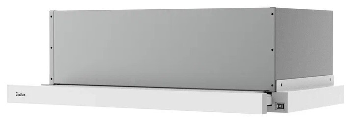 Встраиваемая вытяжка Evelux Tel 60 W шириной 59.8 см станет оптимальным решением для освежения воздуха на кухне. Производительность данной модели составляет 670 м³/ч. Цвет корпуса — белый. Стиль — современный. Интенсивность втягивания воздуха можно отрегулировать на 2 ступенях. Среди полезных функций прибора есть подсветка.