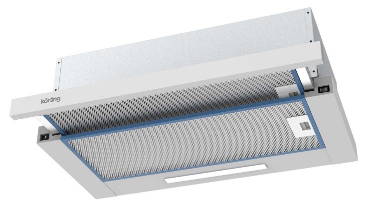 Korting KHP 6512 W — белая встраиваемая вытяжка, которая монтируется в подвесной шкаф. Стандартная ширина шестьдесят сантиметров является оптимальной для работы прибора с четырехконфорочной плитой или варочной панелью. Устройство оснащено выдвижной панелью, которая увеличивает площадь забора воздуха и облегчает управление. Кроме того, здесь предусмотрен выбор из двух скоростей, что позволяет справится как с интенсивными, так и с незначительными испарениями. Модель разработана из качественных материалов и с использованием самых современных технологий, что позволяет снизить уровень шума, издаваемый в процессе работы. Антивозвратный клапан предотвращает попадание неприятных запахов из воздуховода в помещение. Для наилучшего обзора рабочей зоны в процессе готовки имеется яркая и экономичная светодиодная подсветка. Срок службы LED-ламп 50 000 и более часов. Защиту мотора от брызг обеспечивают съемные алюминиевые фильтры, которые легко чистятся от скопления мельчайших частичек жира.