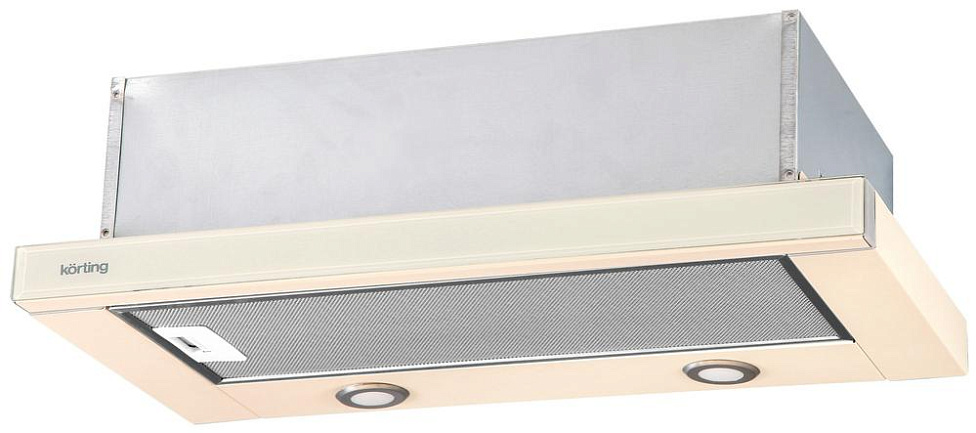 Korting KHP 6617 GB — бежевая вытяжка, предназначенная для встраивания в подвесной шкаф кухонного гарнитура. Модель снабжена выдвижным экраном и поддерживает три скоростных режима. Фронтальная панель устройства выполнена из стекла, благодаря чему легко очищается от пыли и жирного налета. Подсветка рабочей зоны происходит при помощи энергоэффективных LED-ламп.