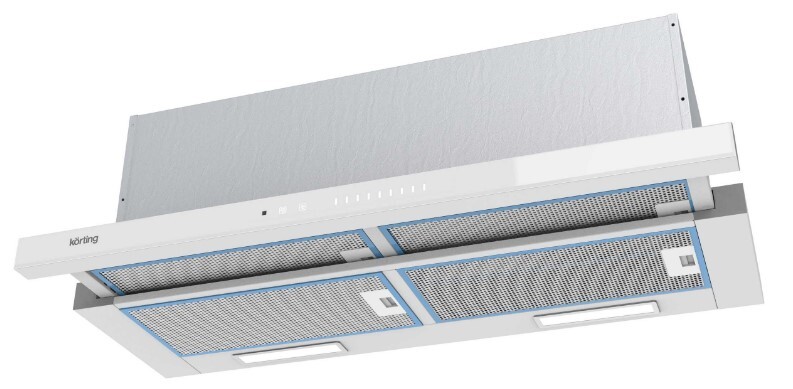 Korting KHP 9975 GW — широкая вытяжка с выдвижным экраном. Модель встраивается в подвесной шкафчик кухонного гарнитура. Благодаря ширине 90 сантиметров техника отлично подойдет для варочных поверхностей с шестью, пятью, четырьмя и менее конфорками. Прибор работает на пяти скоростях, благодаря чему можно с легкостью подобрать оптимальный режим для испарений любой степени интенсивности. Для рециркуляции необходима установка угольного фильтра, который предназначен для улавливания посторонних запахов в процессе приготовления пищи. Для наилучшего обзора рабочей зоны предусмотрено встроенное LED-освещение. Срок службы светодиодных ламп составляет 50 000 и более часов. Таймер обеспечивает автоматическое выключение вытяжки через определенное время. Мигающий светодиод подтверждает, что функция «таймер» активирована. Стеклянный фронт привносит в дизайн помещения особую эстетику. Кроме того стеклянные детали очень удобны в очистке от жирного налета и запыления.