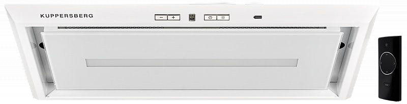 Управление производится с кнопочной панели на поверхности или с пульта ДУ. Вытяжка встраивается в кухонную мебель и имеет уменьшенные размеры — ширина всего 49.5 см, что позволяет использовать ее на небольших кухнях. Корпус металлический, белый, благодаря чему вытяжка Куперсберг INBOX 54 W смотрится элегантно и в то же время не выбивается из общего дизайна кухонного гарнитура.