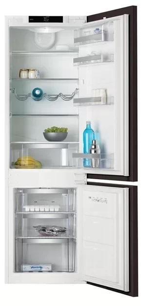 Встраиваемый прибор проще разместить в комнате, даже если общий метраж не такой уж большой. Вы можете спрятать его за декоративной панелью от мебельного фасада — советуем заранее определить нишу и заказывать панели исходя из типа крепления к двери. Способ монтажа в данной модели: скользящее крепление двери (система door sliding) Вы можете поменять направление открывания двери, так как упор переставляемый и ее можно перевесить на другую сторону. Такая функция открывает больше возможностей для установки. Холодильник с морозильником обладает всеми опциями, которые чаще всего ищут и выбирают покупатели. Стандартная конфигурация — универсальный вариант для любой квартиры. Количество камер: 2.