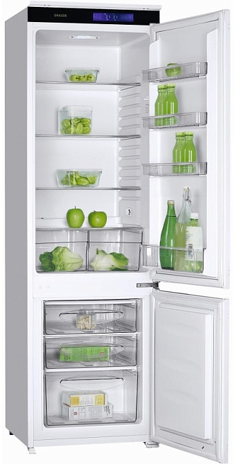 Graude IKG 180.1 — встраиваемый холодильник с сенсорным управлением. Для размещения продуктов предусмотрено четыре полки из закаленного стекла, два пластиковых контейнера и три выдвижных бокса в морозильной камере. LCD-дисплей с индикацией температуры позволят проконтролировать текущие параметры охлаждения.