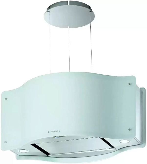 Данная вытяжка крепится к потолку — обычно над кухонным островом, где расположена рабочая зона. Обратите внимание на цветовые сочетания модели De Dietrich DHD1147W, чтобы органично вписать ее в свою квартиру. Оттенок корпуса: белый. Благодаря лампочкам, которые расположены на нем, можно освещать плиту и столешницу рядом, чтобы готовить было еще проще и приятнее.