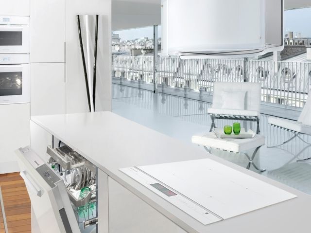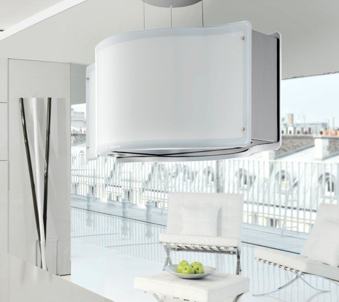Данная вытяжка крепится к потолку — обычно над кухонным островом, где расположена рабочая зона. Обратите внимание на цветовые сочетания модели De Dietrich DHD1147W, чтобы органично вписать ее в свою квартиру. Оттенок корпуса: белый. Благодаря лампочкам, которые расположены на нем, можно освещать плиту и столешницу рядом, чтобы готовить было еще проще и приятнее.