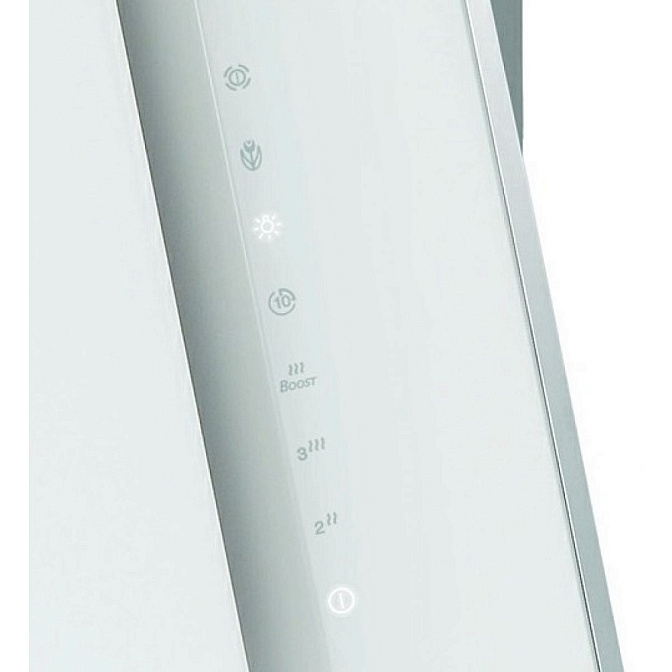 Настенная вытяжка в белоснежном корпусе с сенсорным управлением и функцией фильтрации запахов «Eolyse». Вытяжка прекрасно очищает помещение в двух режимах работы (отвод+циркуляция), два фильтра надежно защищают воздух от копоти, мелких частичек жира и пыли. Максимальная производительность вытяжки 730 м3/ч, есть возможность подключения настенной панели CHD159X.