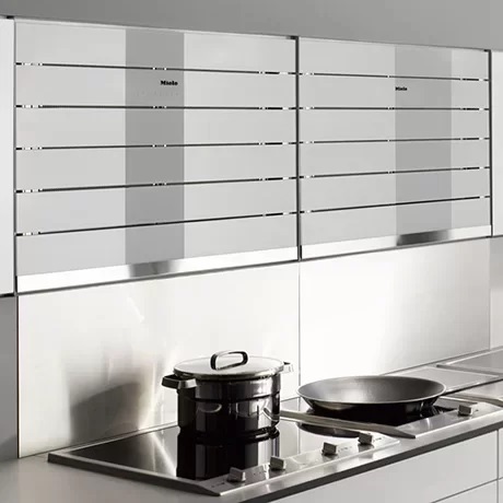 Настенная вытяжка с наклонной передней панелью гармонично сочетает в себе стеклянные пластины с корпусом из нержавеющей стали. Модель оснащена сенсорным управлением, режимами циркуляции воздуха и интенсивной мощности. Функции автоматического отключения и блокировки вытяжки гарантируют высокую степень безопасности при работе с ней в течение длительного времени.